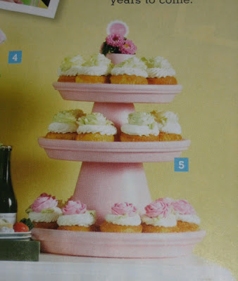 My stand is silver metal, but I saw this DIY version in the Lowe's project magazine and just had to share. They made it using 2 terracotta pots and some terracotta plant plates. I think the color is super fun but the only issue I can see with this version is storing it.